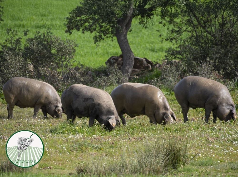 – Cerdo de Cebo de Campo: Esta categoría es una combinación de alimentación natural y suplementación. Los cerdos de cebo de campo también disfrutan de la vida en nuestra dehesa, donde se alimentan de los recursos naturales disponibles. Sin embargo, su dieta se complementa con cereales naturales que son molidos en nuestras instalaciones, asegurando un control de calidad en la alimentación y toda la trazabilidad desde su nacimiento hasta su fase final. Esta combinación permite que los cerdos desarrollen una carne de sabor característico, aunque no tan intensa como la del cerdo de bellota, pero igualmente apreciada por su calidad y equilibrio en el sabor y la textura.